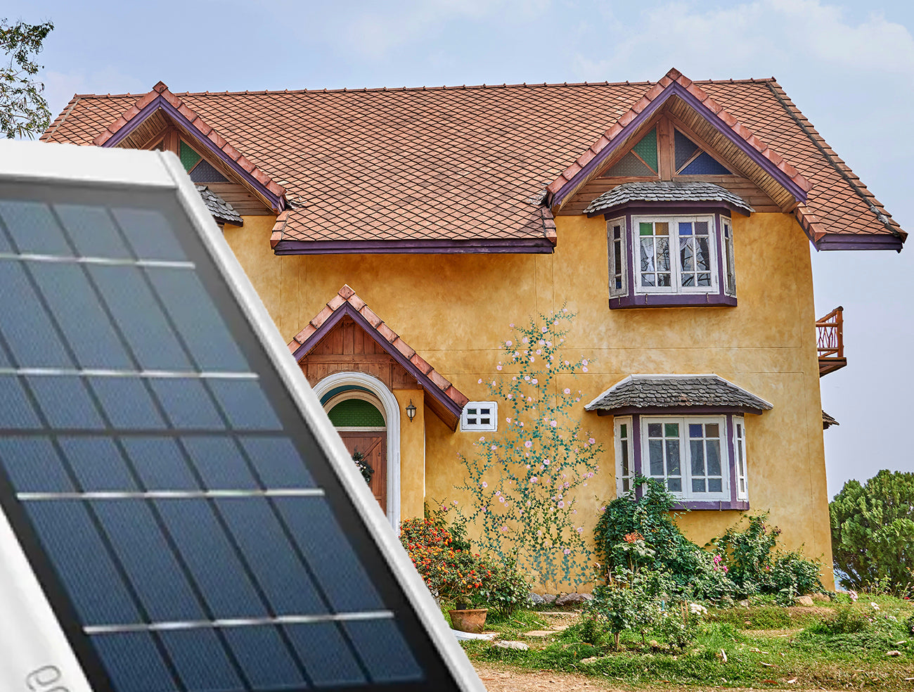 The Beakle Bird House includes a 6ft cable to connect the camera to the solar panel, so the solar panel will need to be within 6 feet of the Beakle Bird House.